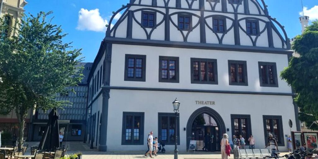 Der mächtig ausladende und fünfgeschossig emporstrebende, überdies mit einem Uhrturm bekrönte Schausgiebel des Gewandhauses behauptet sich bis heute als…
